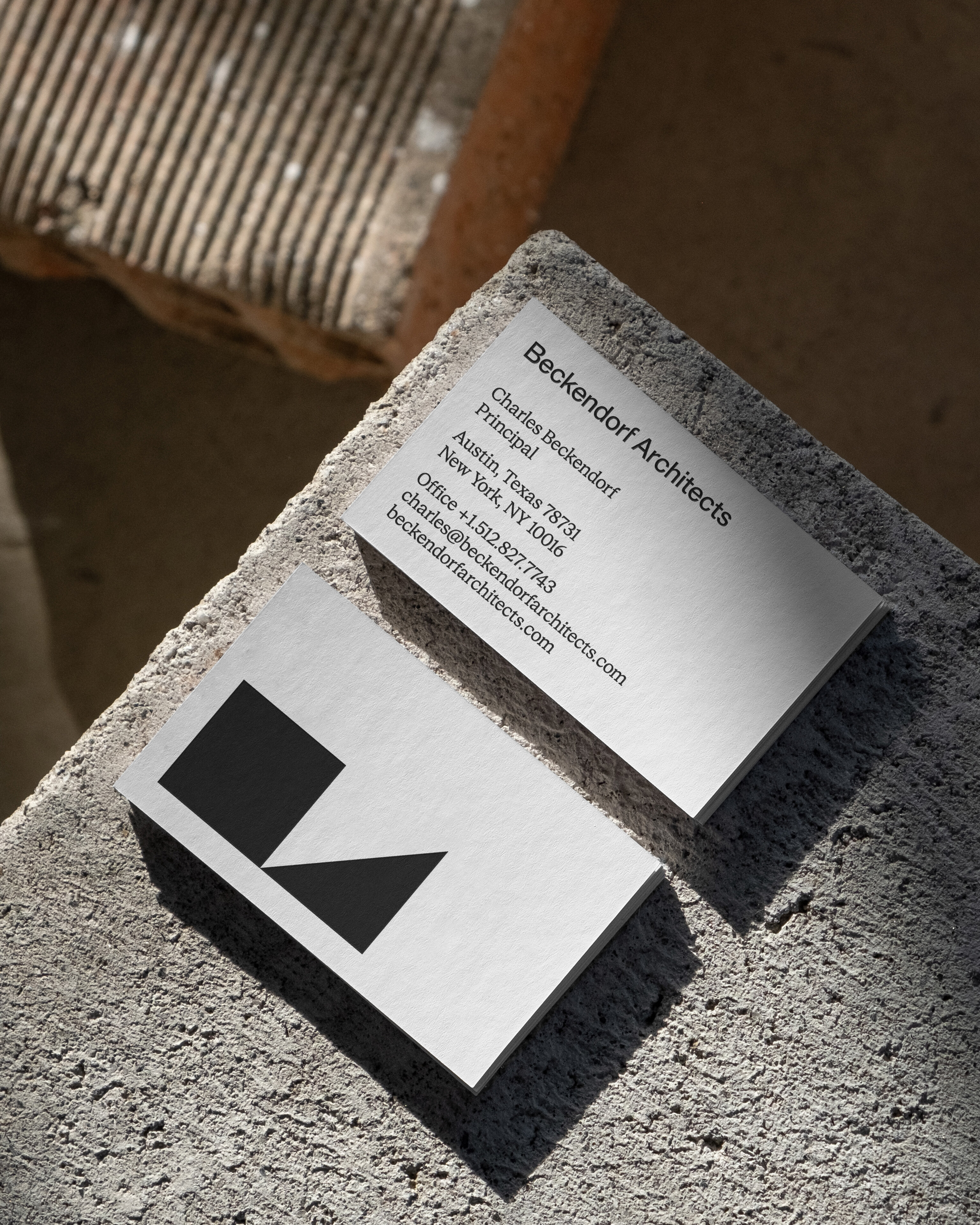 Beckendorf Architects’ symbol references the founder’s European roots and interest in functionalism. Abstract shapes suggest space, mass and void while subtly forming the initials B and A.