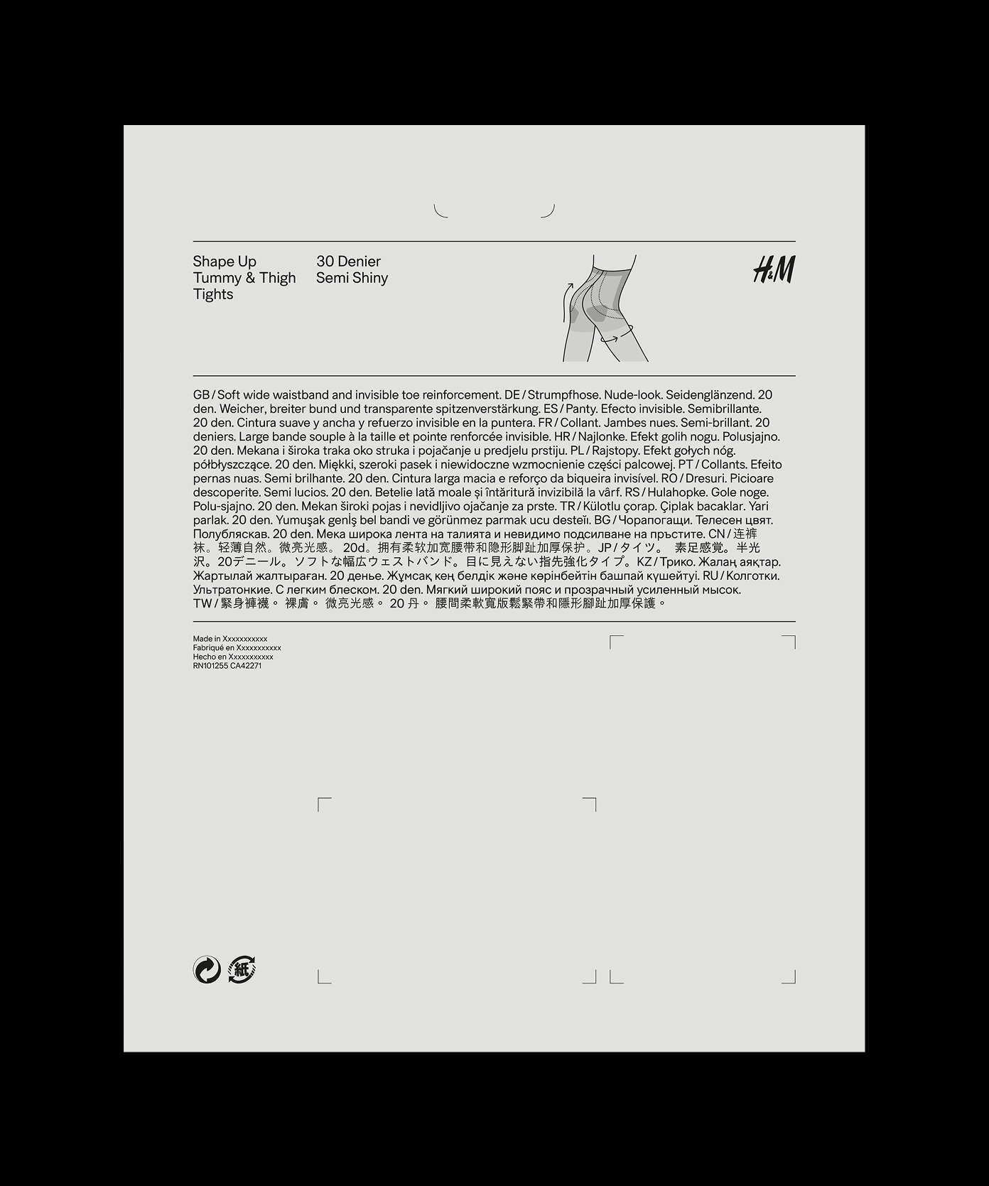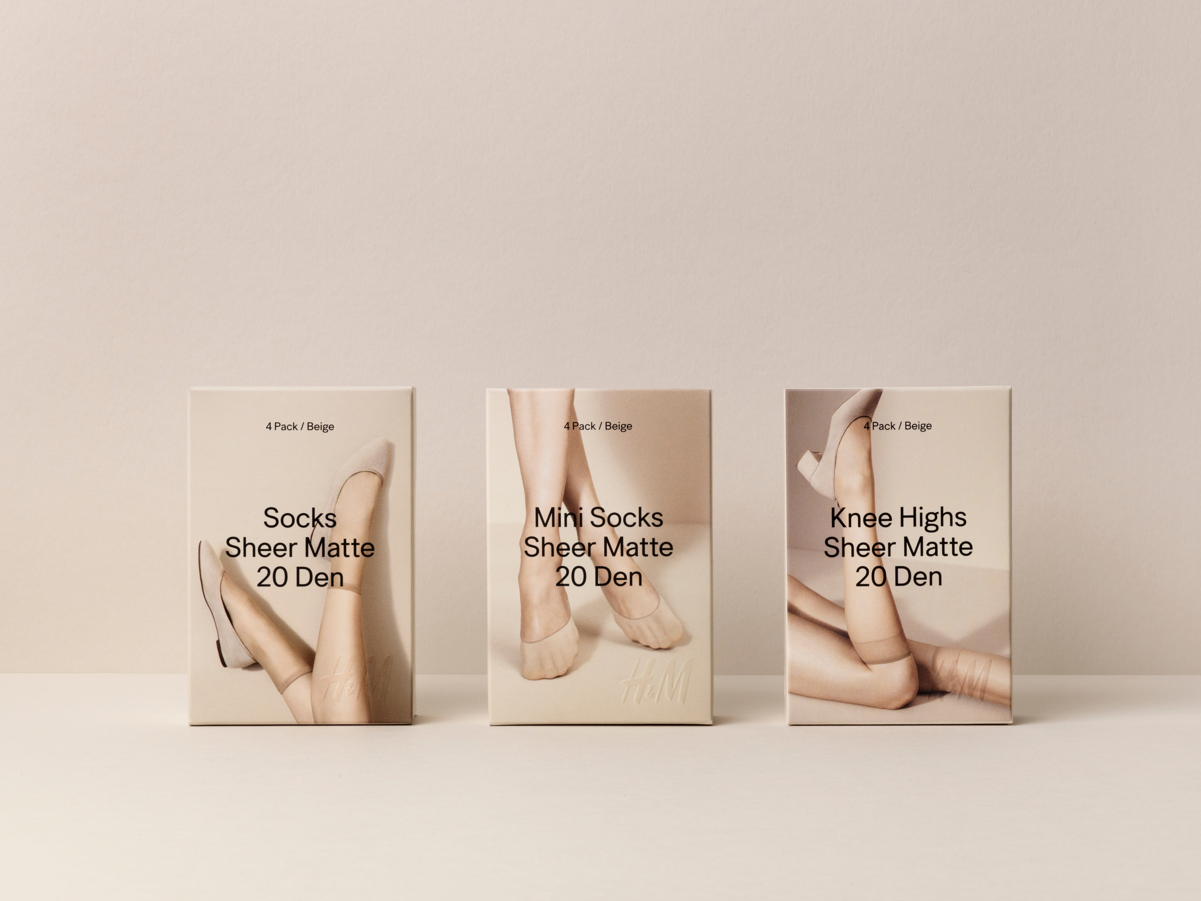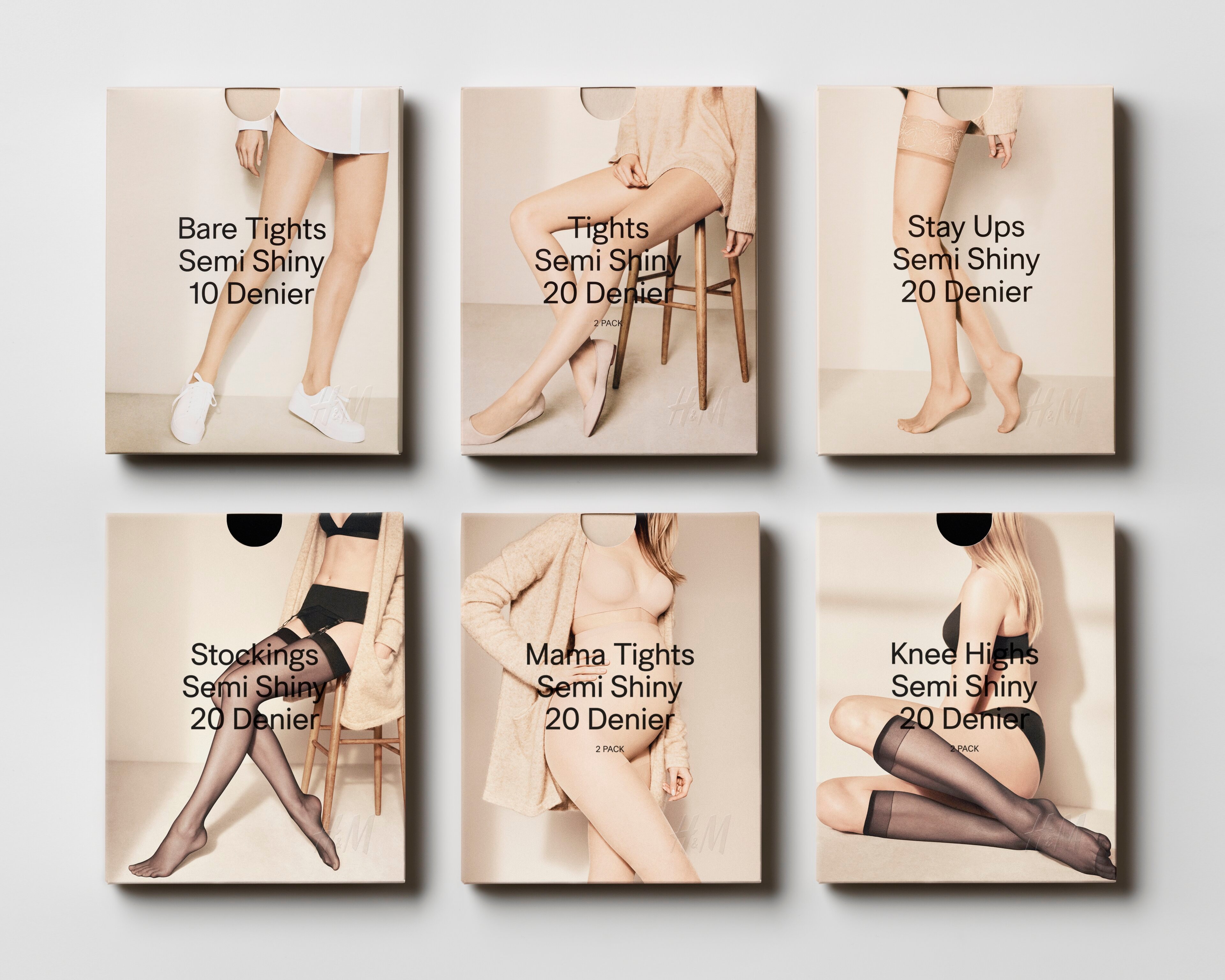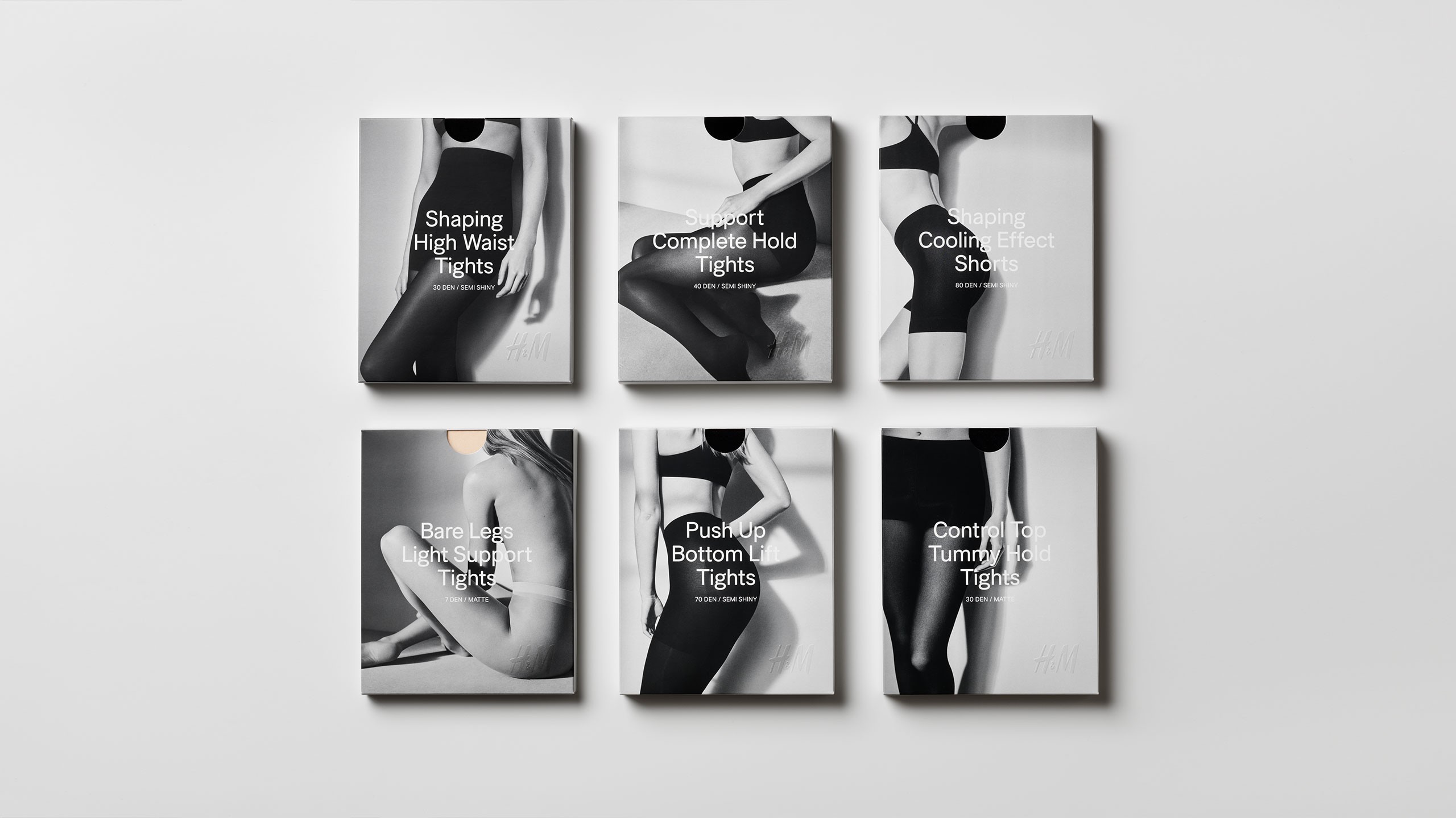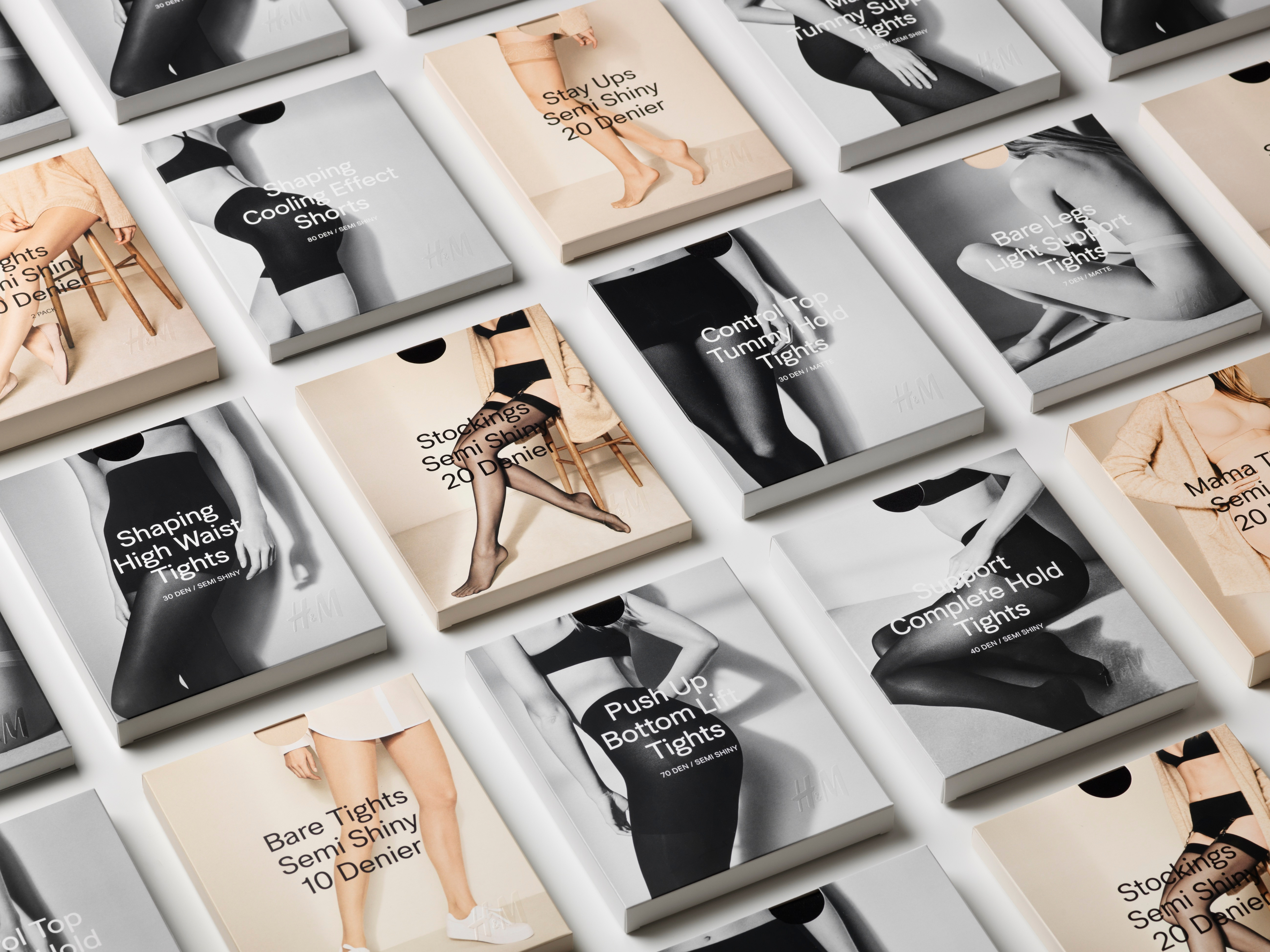 The redesign of H&M Tights assortment was intended to achieve a more premium look, simplify the customer buying experience and increase shelf impact. The vision with the art direction was to achieve a contemporary edge while setting a timeless look. We worked with relaxed poses and natural lighting, to create a timeless expression in order to appeal to the gaze of the women today. Renowned photographer Annemarieke van Drimmelen achieved a sculptural quality with the images, allowing each distinct pose to differentiate the product range.