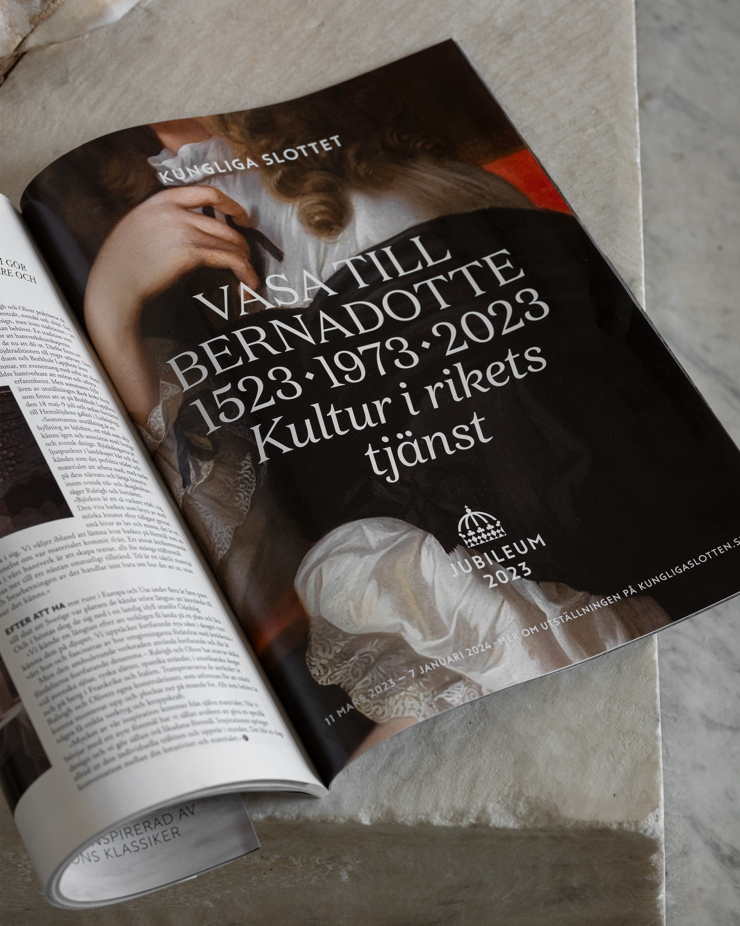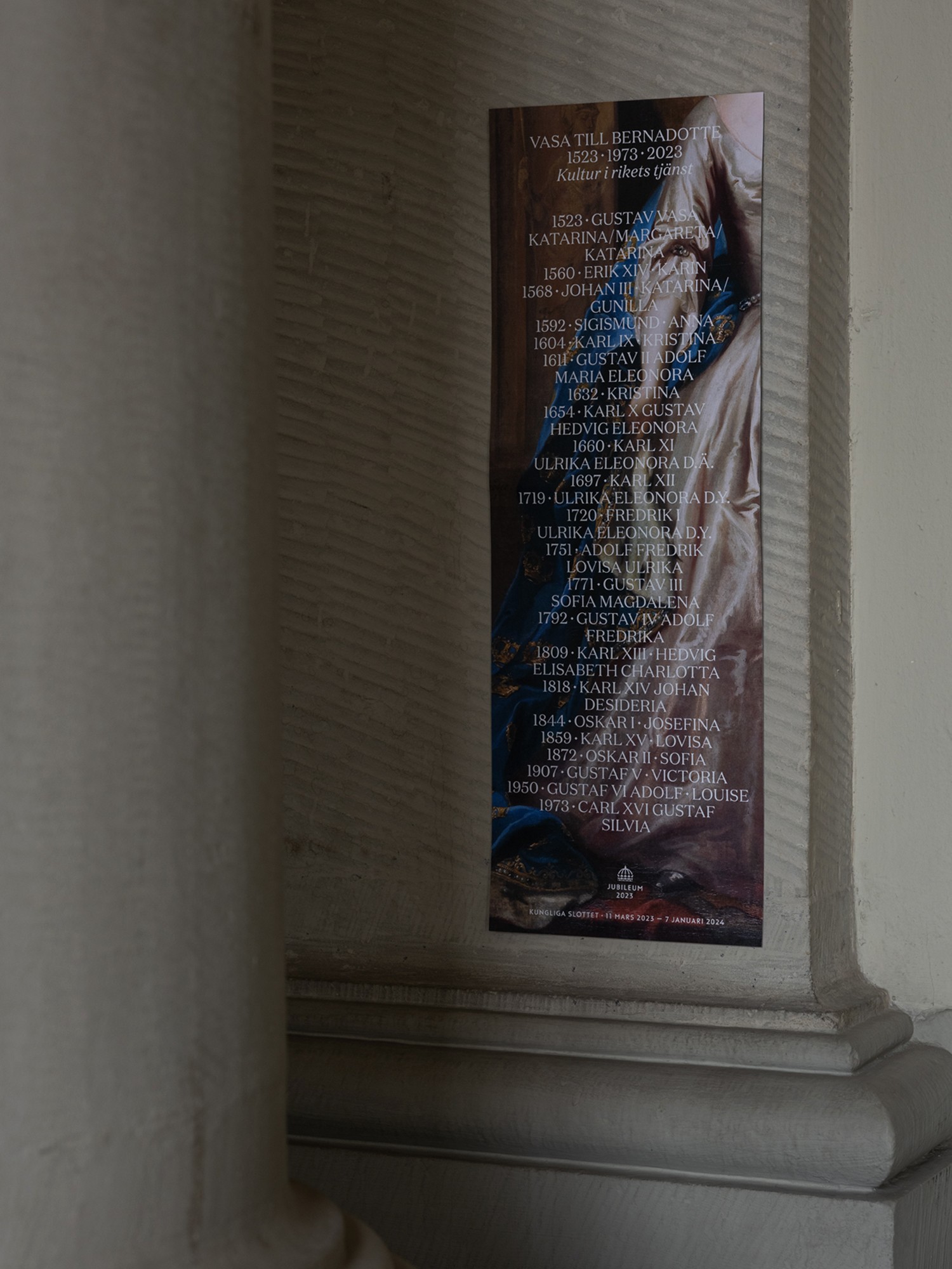 Vasa to Bernadotte, Culture in the Service of the Realm. The exhibition celebrates the Swedish Royal Court’s double jubilee year, marking the HM the King’s 50 years on the throne as well as 500 years since Gustav Vasa was crowned the first king of Sweden. The jubilee year was celebrated with the palace’s most comprehensive exhibition to date.