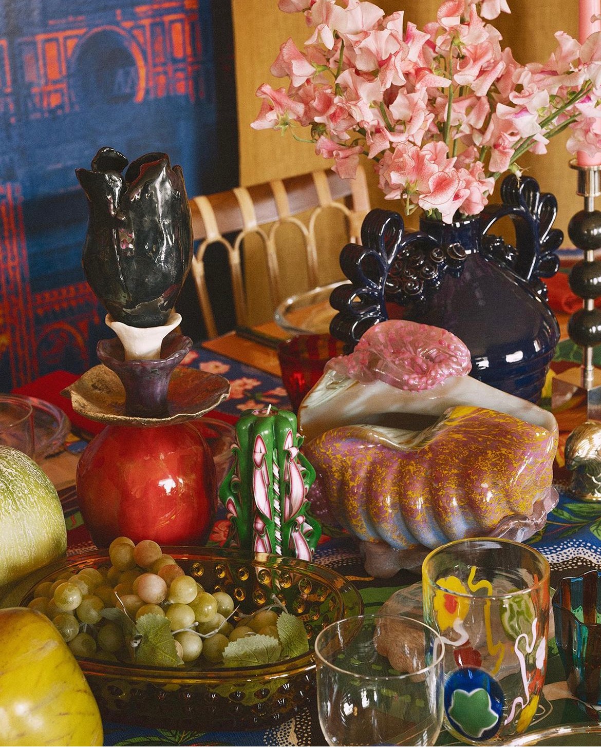 The renowned Swedish furniture producer and interior company Svenskt Tenn was founded in 1924 by Estrid Ericson. Together with Austrian-born Josef Frank, they formed their characteristic personal style which is as modern today as it was in the 1930’s. With an eclectic collection of objects, tableware and furniture, Margherita dials up the patterns and colours of design legend Josef Frank. Freely combining new products with old, stripes with prints, ruffles with crochet table cloths all with a good dose of irony. A modern curation of play.